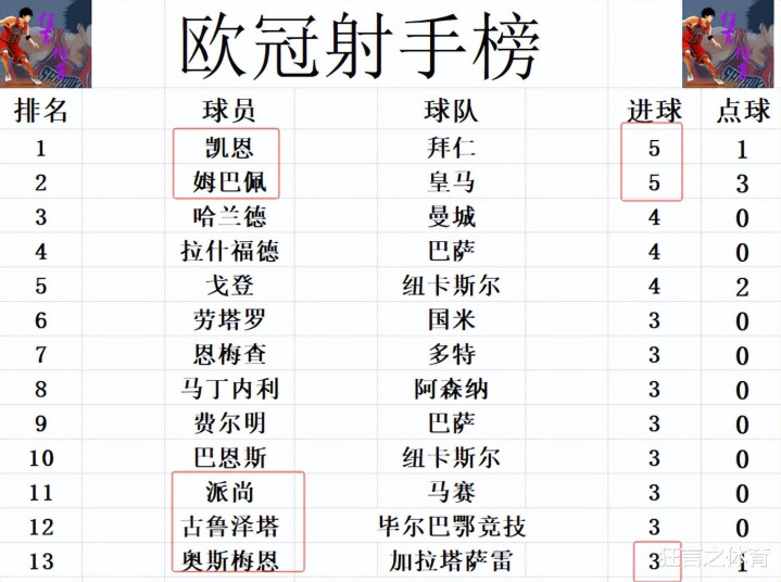 Xét về danh sách vua phá lưới, hôm nay, Hôm nay, anh đã bỏ lỡ cơ hội tốt và không ghi được bàn nào. Kane ghi 1 bàn nhưng bị Kane vượt qua. Cả hai cùng tranh ngôi đầu bảng với 5 bàn thắng. Harland, Rashford và Gordon đồng hạng ba với 4 bàn thắng. Guruzeta, Osimhen, Paishan ghi bàn và đuổi kịp Lautaro. Fermin và những người khác vừa lọt vào top 10 với 3 bàn thắng.